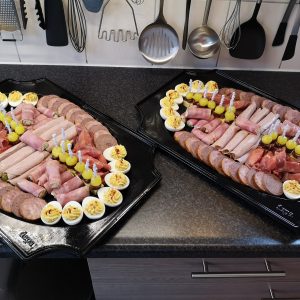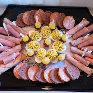 Salades Huzarensalade Rundvleessalade Zalmsalade Tonijnsalade Eiersalade Kerrie salade Luxe hapjesschalen Standaard hapjesschalen Soepen Aspergesoep Bospaddestoelensoep Broccolisoep Bruinebonensoep Kerriesoep Mosterdsoep Snert Tomatensoep